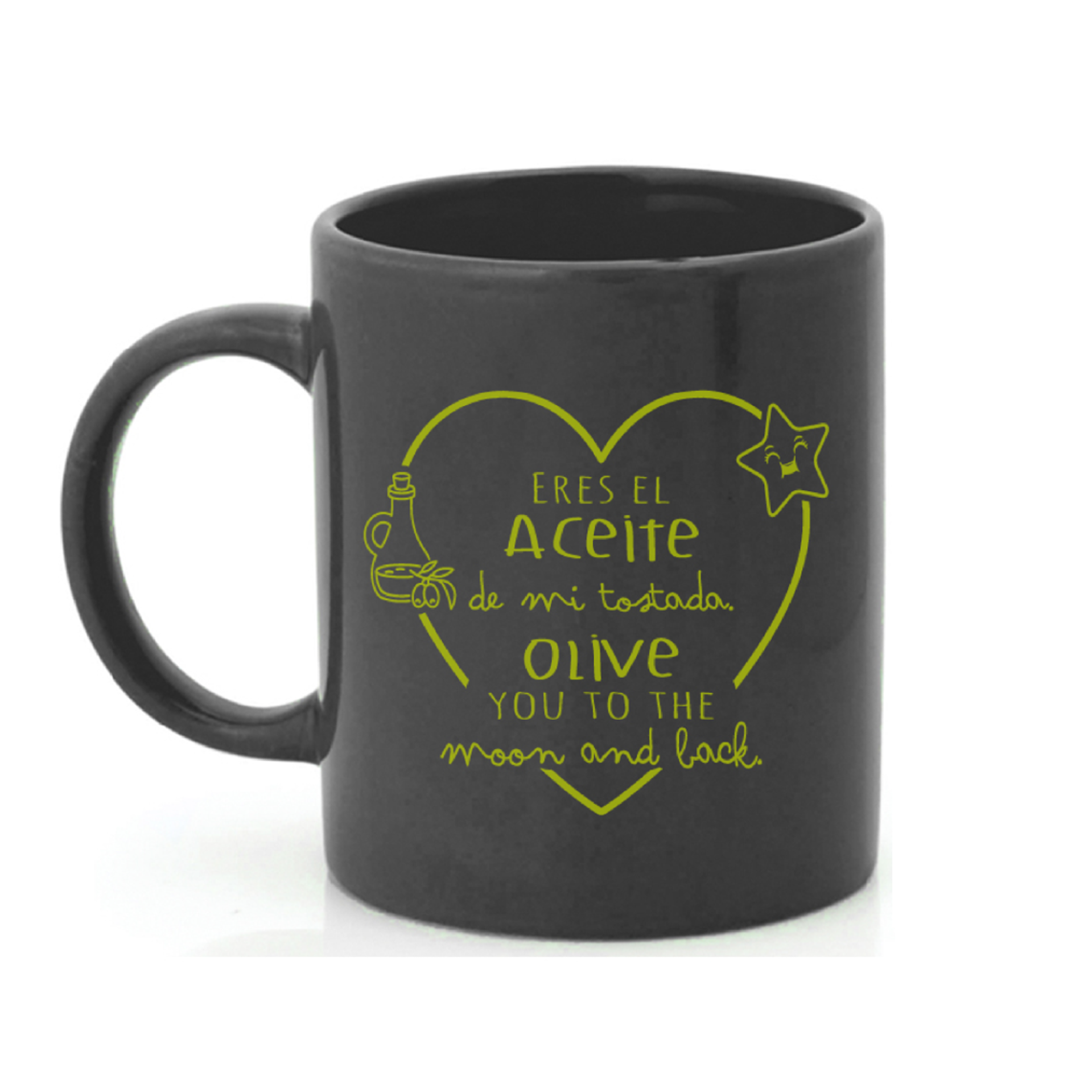«Descubre la mezcla perfecta de romance, humor y recuerdos en nuestra irresistible ‘Taza aceite de mi tostada’. Diseñada con amor y un toque de ingenio, esta taza te transportará a los momentos más entrañables de tu visita a OleoAlmanzora. Imagina disfrutar de tu café matutino con el aroma del aceite de oliva fresco impregnando el aire, recordando los sabores y la hospitalidad que solo nuestra tienda puede ofrecer.